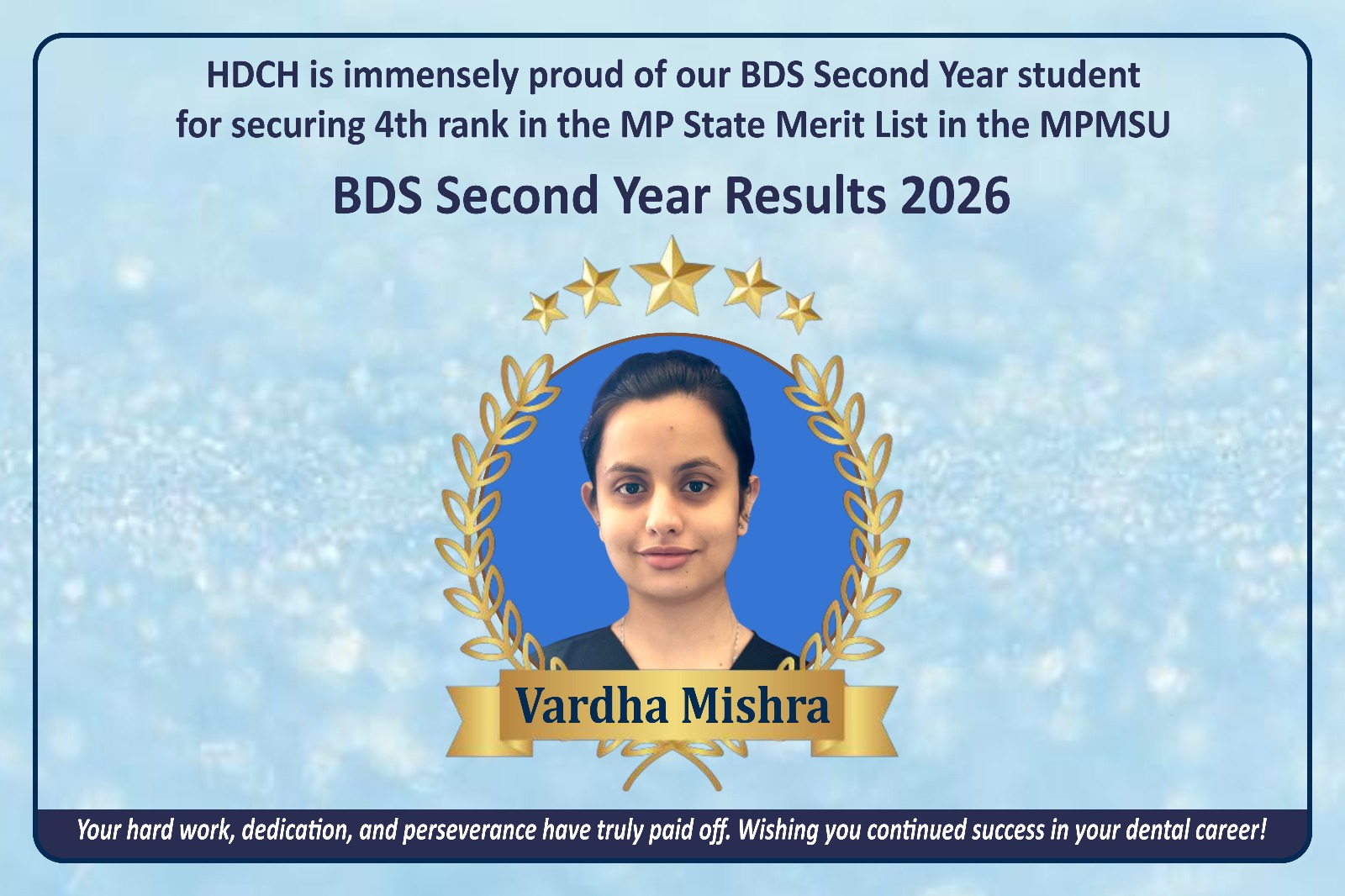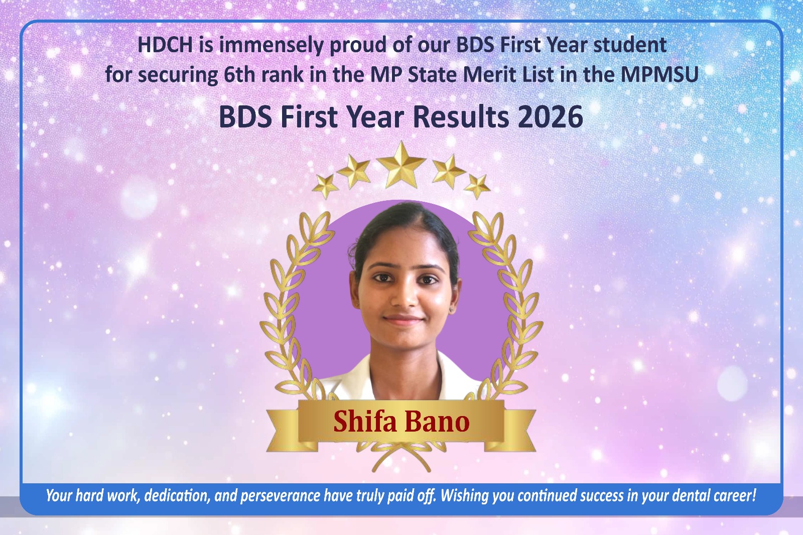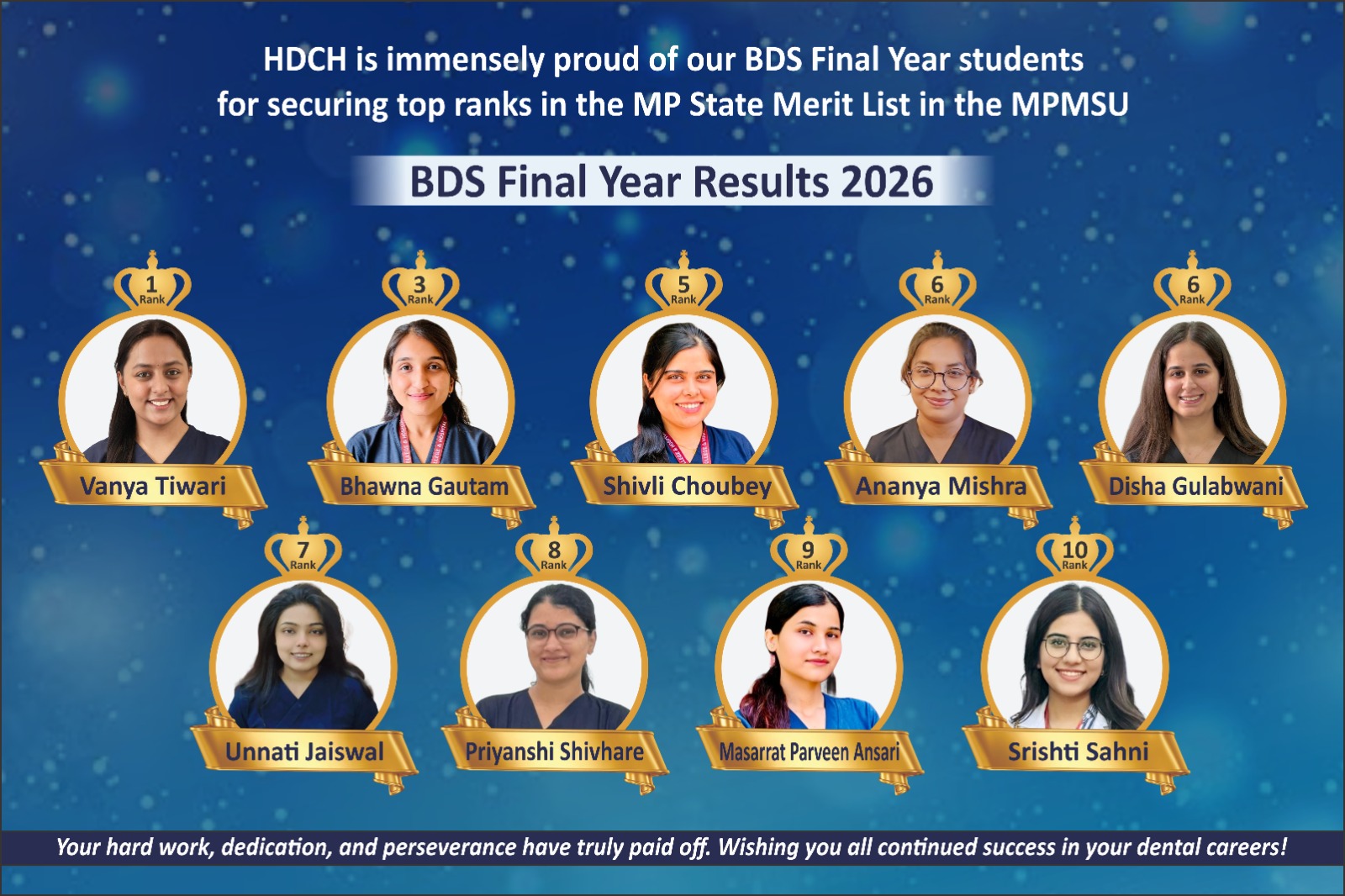 A full-time undergraduate program recognized by the Dental Council of India, awarded by Madhya Pradesh Medical Science University, Jabalpur. The course follows the curriculum and standards set by the DCI and provides a comprehensive foundation in dental science and practice.